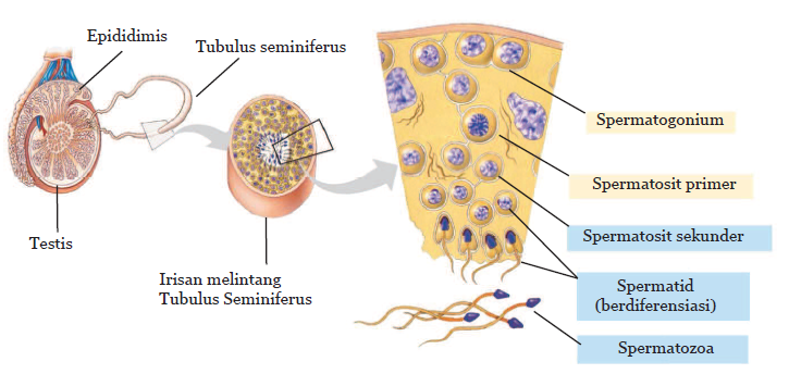 Proses pembentukan sperma disebut spermatogenesis. Proses pembentukan sperma terjadi di tubulus seminiferus.