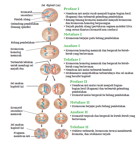 - Spermatosit I membelah secara meiosis menghasilkan 2 sel spermatosit sekunder atau spermatosit II (n)